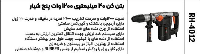بتن کن 40 میلی متری 1200 وات چهارشیار کد محصول : RH-4012