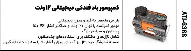 کمپرسور باد فندکی دیجیتالی12 ولت کد محصول : ATJ-6388