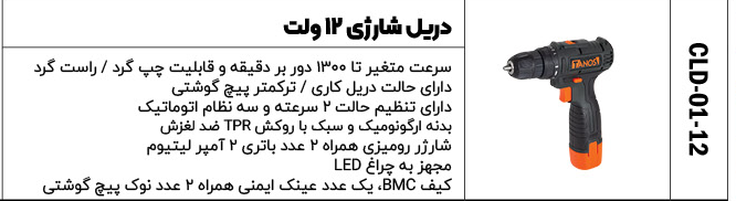 دریل شارژی 12wتانوس کد cld-01-12