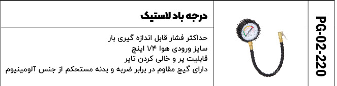درجه باد لاستیک کد محصول : PG-02-220