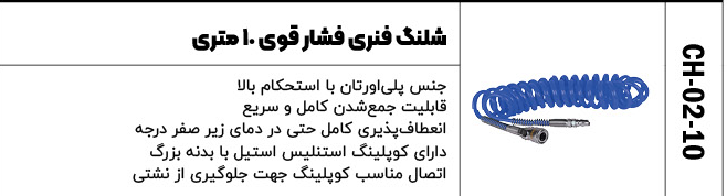 شلنگ فنری فشار قوی 10 متری کد محصول : CH-02-10