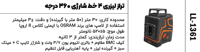 تراز لیزری 4 خط نور سبز کد محصول : LL-1361