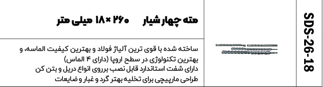 مته چهار شیار کد محصول : 260-18-SDS